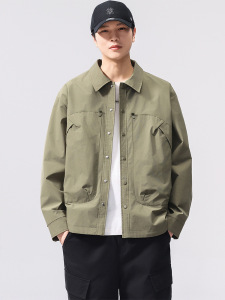 2025男士夹克外套春秋季大码加肥舒适宽松胖子休闲百搭翻领上衣男