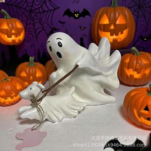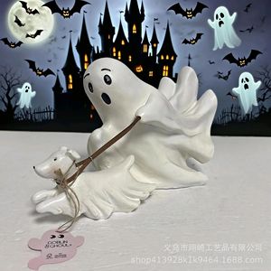 跨境亚马逊万圣节装摆件树脂工艺品幽灵遛狗装饰摆件线下商超装饰
