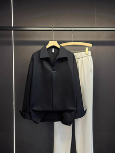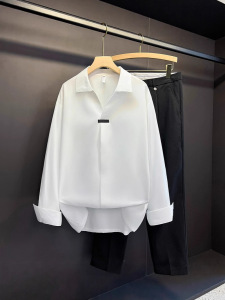 春秋季新款衬衫男士长袖衬衣套头上衣翻领高级感轻熟风痞帅打底衫