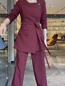 2907大码女装职业气质通勤方领西装套装胖mm设计感西服长裤两件套