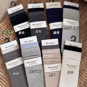 南业新款撞色双罗口韩版抽条直板中筒女袜超柔棉无骨缝有跟堆堆袜