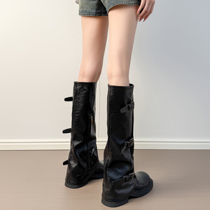 复古裤管靴女2025秋冬新款厚底高筒骑士靴子不过膝显瘦堆堆长筒靴