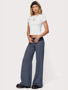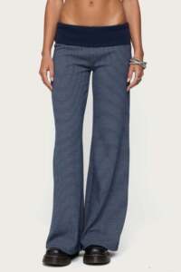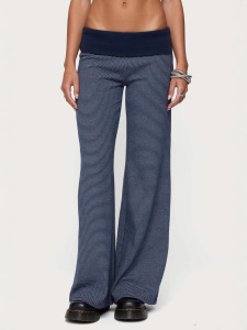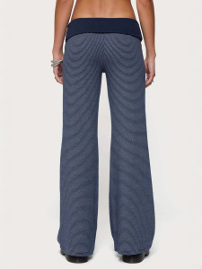 S32342款欧美跨境新品美式休闲条纹反折腰长裤低腰宽松直筒裤女装