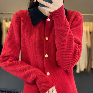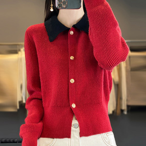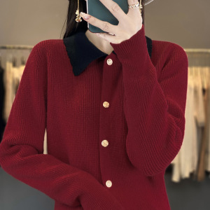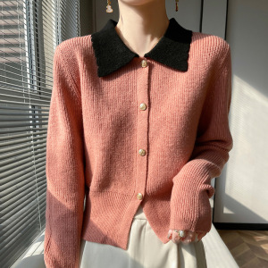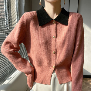 法式高级感POLO领针织开衫女2025秋季新款时尚百搭显瘦上衣A6236