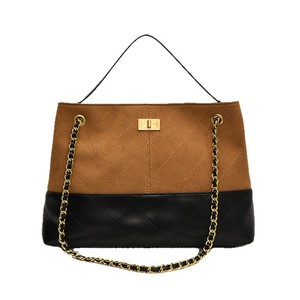 2025新款小香磨砂皮棱格链条单肩包水桶包撞色女包斜挎包腋下包