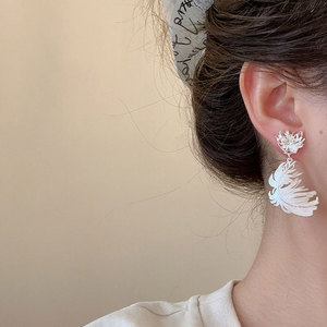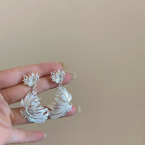 设计感轻盈羽毛纹理金属耳钉女小众精致独特时尚潮流通勤耳环耳饰