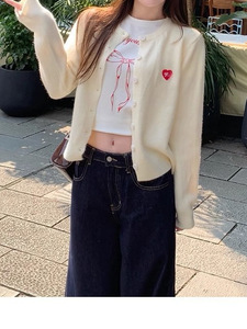 毛衣开衫女2025新款外套春秋款爱心针织衫宽松可爱早秋新款上衣