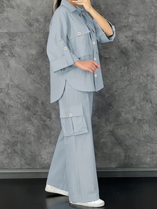 女士纯色时尚套装多口袋工装上衣四季可穿上衣+长裤舒适亲肤