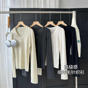 含细羊毛~巨显瘦高级感 圆领修身长袖针织打底衫套头毛衣秋冬新款