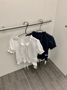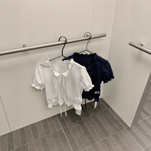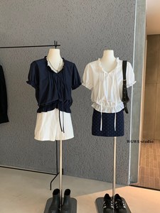 【WGWE】6745甜美木耳花边泡泡短袖2025新款今年流行爆款系带小衫
