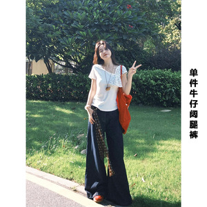 牛仔阔腿裤【夏日轻薄裤子/裤子极简阔腿/裤子2025新款今年流行/今年流行裤子/别致裤子/裤子极简阔