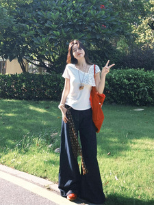 2025韩系一整套ootd穿搭夏日松弛感chic斜肩上衣阔腿裤两件套装女