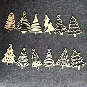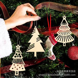 圣诞节木质挂牌 圣诞树镂空木质气氛装饰挂件手工DIY彩绘木质家居