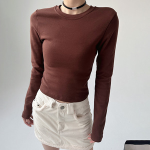 秋装纯色正肩短袖恤女百搭休闲上衣修身显瘦秋冬基础打底衫