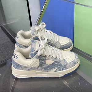 牛仔拼色板鞋女春秋新款休闲运动鞋透气耐磨小白鞋女鞋