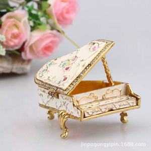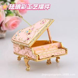 跨境亚马逊金属珐琅彩绘镶钻钢琴小摆件创意家居桌面轻奢装饰摆件