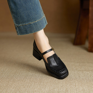 高跟鞋2025春季女鞋粗跟中跟低帮鞋玛丽珍鞋中口复古单鞋小皮鞋