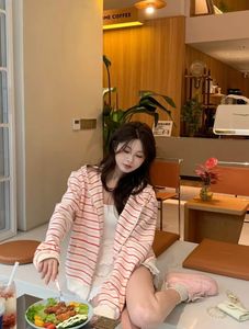 港风chic条纹连帽拉链开衫卫衣女春秋宽松oversize学院风百搭外套