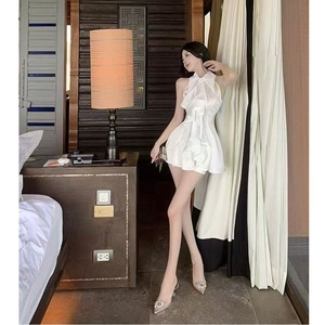温柔风甜美荷叶边无袖衬衫上衣女夏法式气质中长款收腰修身衬衣裙