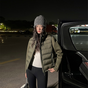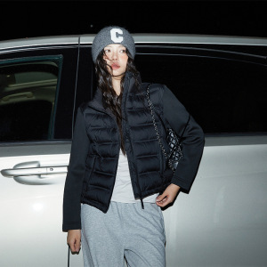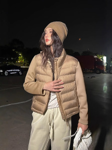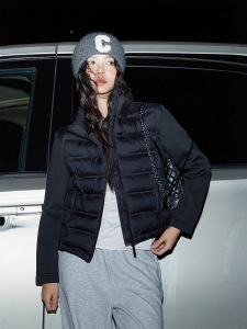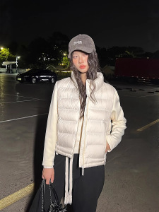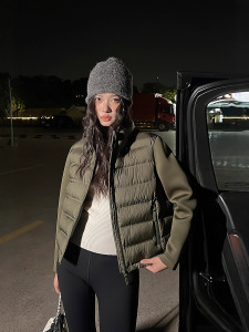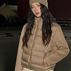 跨境货源批发秋季新品欧美跨境女装休闲袖子拼接棉服外套纯色外套