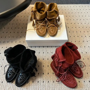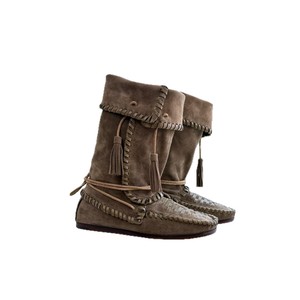绑带流苏靴女高版2025夏新款复古编织真皮平底舒适中筒西部堆堆靴