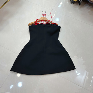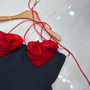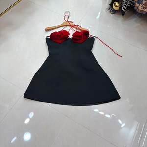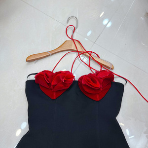 十三行澳洲小众设计感立体花朵系带收腰撞色小礼服连衣裙A2#8359
