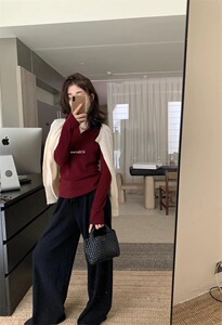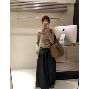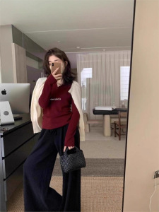 韩系温柔半拉链连帽针织衫女秋冬内搭慵懒修身打底毛衣设计感上衣