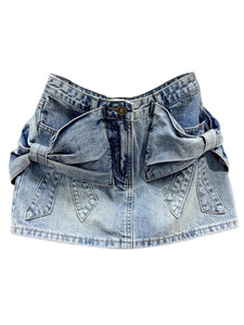 立体蝴蝶结牛仔短裙女新款夏装辣妹风小众设计感包臀A字型半身裙
