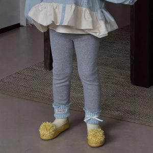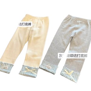 女童打底裤秋季新款2025女宝韩版百搭格子蝴蝶结拼接外穿打底长裤