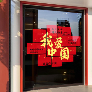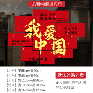 国庆节玻璃贴纸装饰静电贴商场节日场景布置橱窗店铺窗花贴画红色