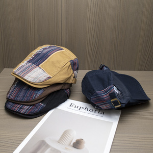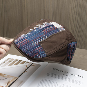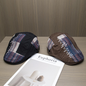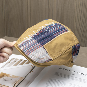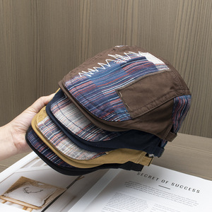 文艺复古帽子男士英伦贝雷帽休闲百搭鸭舌帽个性拼接休闲前进帽女