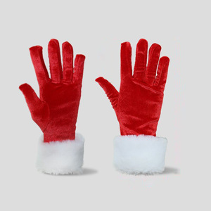 圣诞节派对手套短款金丝绒加白色毛红色手套服装配饰红手套袖保暖