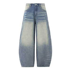 美式复古水洗弯刀牛仔裤女2025年秋冬新款直筒宽松高腰显瘦阔腿裤