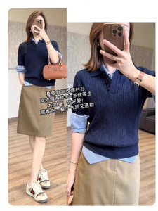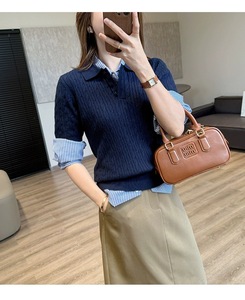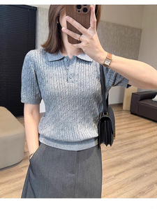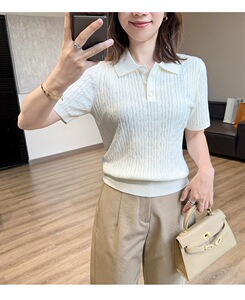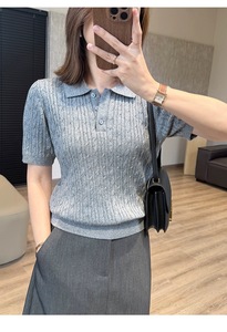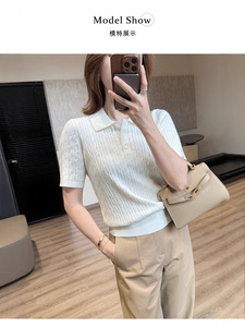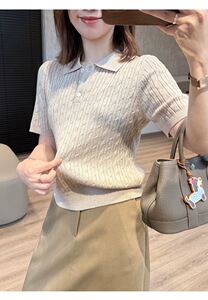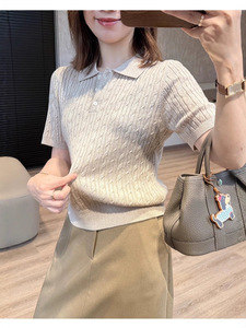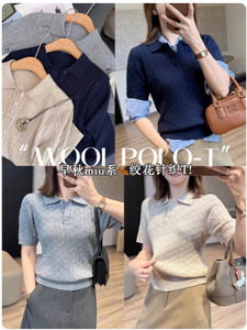 老钱风polo针织短袖!miu系绞花羊毛混纺薄针织衫T精品上衣秋季女