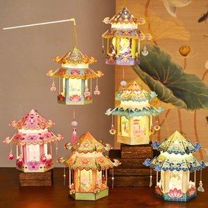 中秋节古风灯笼2025新款花灯儿童手工diy材料包手提发光宫灯批发