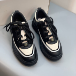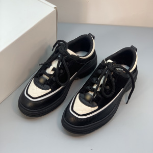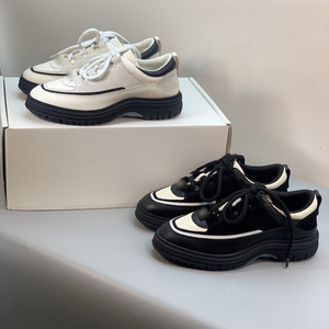 潮流时尚百搭毛毛鞋女25春秋新款运动鞋系带真皮熊猫色板鞋老爹鞋