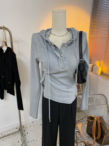 连帽长袖t恤女2025春秋新款韩版修身显瘦短款上衣打底衫ins潮卫衣