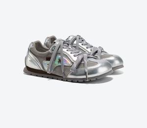 休闲运动女鞋2025秋季新款潮流复古百搭丑萌银色德训鞋撞色阿甘鞋