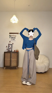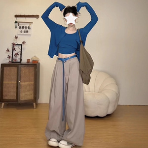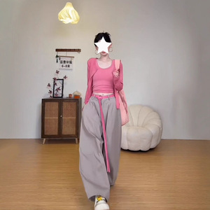 抖音外搭披肩短外套罩衫早秋开衫加吊带阔腿裤修身显瘦女款三件套