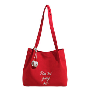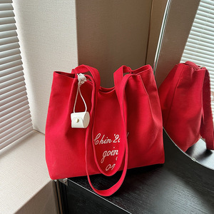 南Chio2nd盛夏旅行托特包包女大容量红色帆布包2025新款单肩包包
