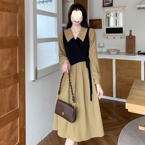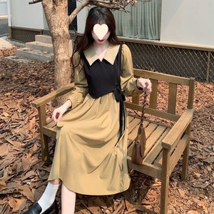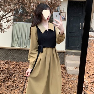 大码胖MM秋季法式赫本风设计感假两件连衣裙收腰茶系文艺温柔长裙