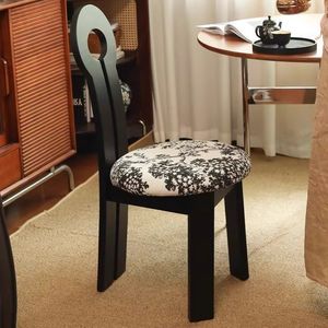 法式实木餐椅中古人鱼钥匙椅子靠背复古侘寂风设计师餐厅化妆凳子