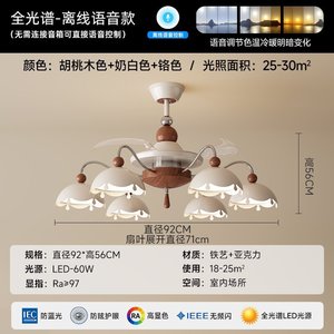 中古风扇灯法式奶油风卧室吊扇灯静音全光谱现代简约主卧餐厅吊灯