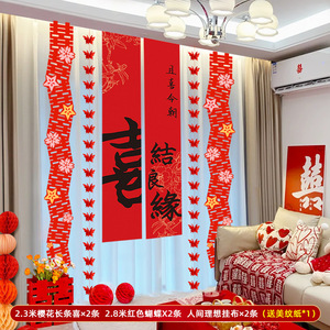 结婚布置用品多巴胺婚房布置套装婚礼背景墙客厅窗帘装饰拍照道具