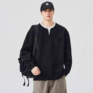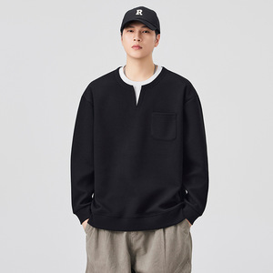 安洋假两件长袖卫衣男士2025秋季新款宽松休闲百搭V领套头衫批发