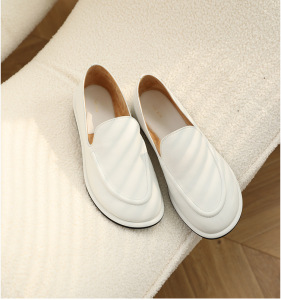 2025新款现货真皮平底白色乐福鞋女百搭一脚蹬单鞋女小众设计女鞋