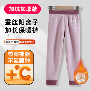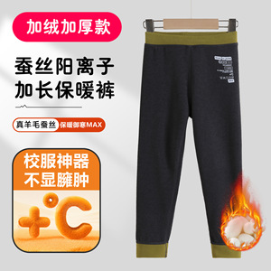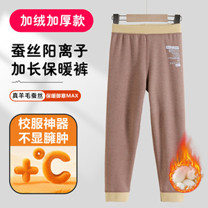 2025秋季新款儿童校服神器炫彩蚕丝羊毛保暖裤双面磨毛童装保暖裤