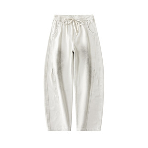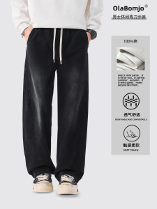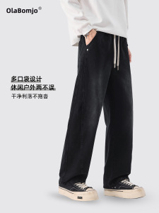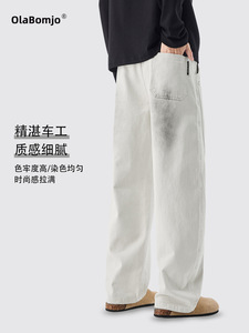 OLA牛仔裤男秋冬新款美式宽松阔腿高街潮牌休闲拼接痞帅直筒裤