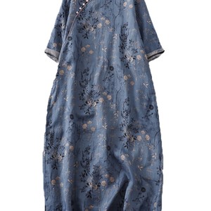 新中式印花日常改良旗袍裙女夏季复古国风减龄棉麻连衣裙中长裙子