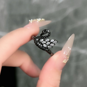 万圣酷饰暗黑天鹅蝙蝠蜘蛛时尚朋克开口戒指无性别风潮流小众指环